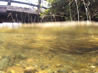 自然豊かな公園ってキャッチフレーズでも、現実には下流側の川は渓流性の生き物にとっては不適ということか?