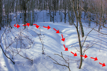 昨秋の時点で、過去のメモや写真、そして地形の凹みと植生からおおよその位置関係を推定しておいた。