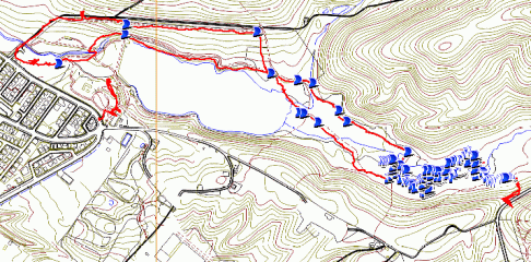 ←カシミール3Dで1/2500国土基本図に重ねてみた